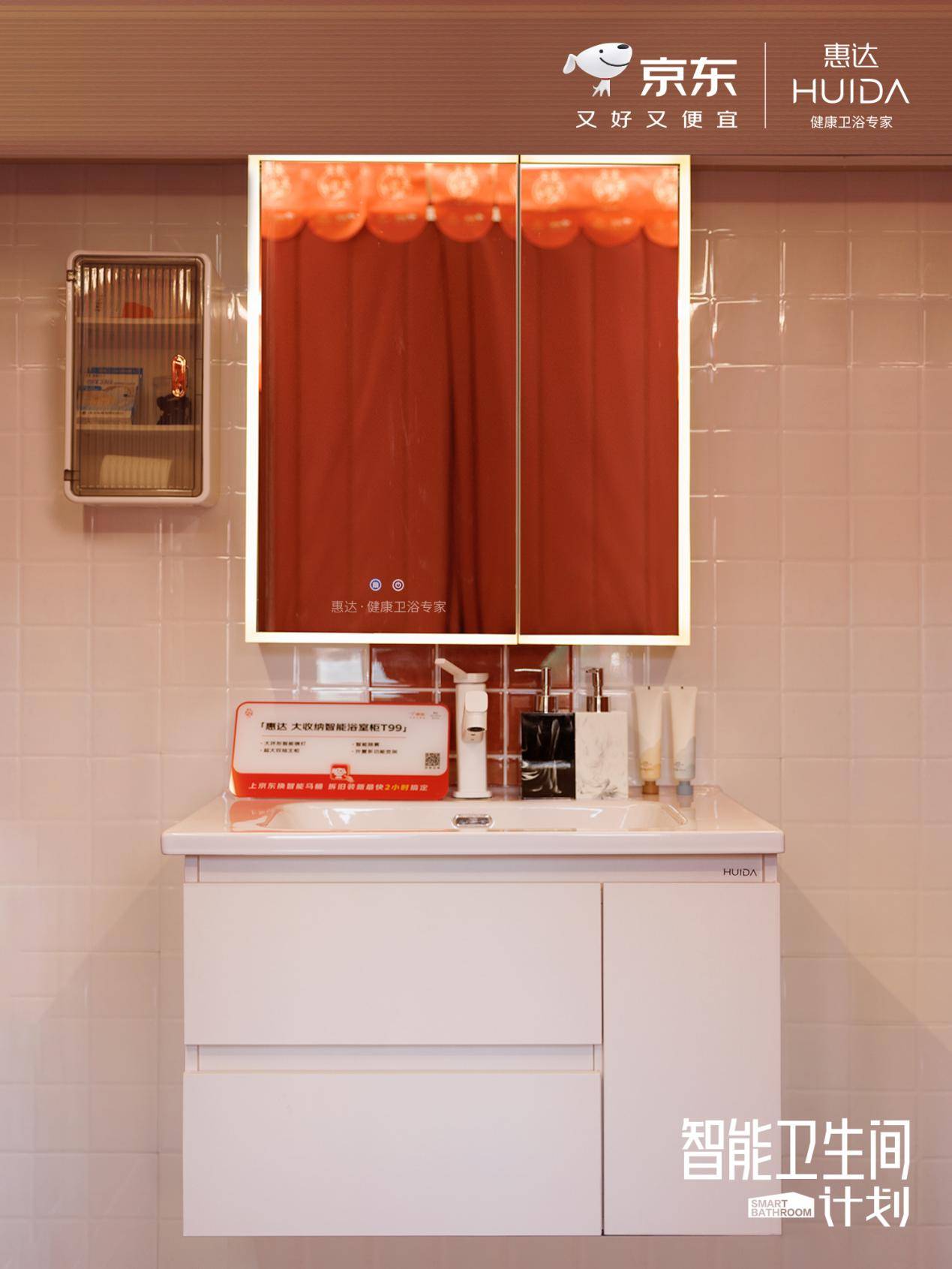 公共区域的惠达智能浴室柜同样亮点纷呈。其镜面具备一键除雾功能,搭配模拟自然光的环形灯带,即便在哈尔滨冬季高湿度环境下,也能为游客提供清晰从容的补妆整理条件。加深防溅陶瓷盆、贴心预留的纸巾孔、吹风机架及手机支架等,各种细节体现对使用者实际需求的深度洞察。